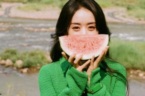 从照片中可以看出,赵丽颖的表情非常逗趣,眼睛瞪得大大的,嘴巴张得老大,仿佛在说:“这个瓜真好吃!”她的眼神中透露出一丝俏皮和可爱,让人忍不住想笑。